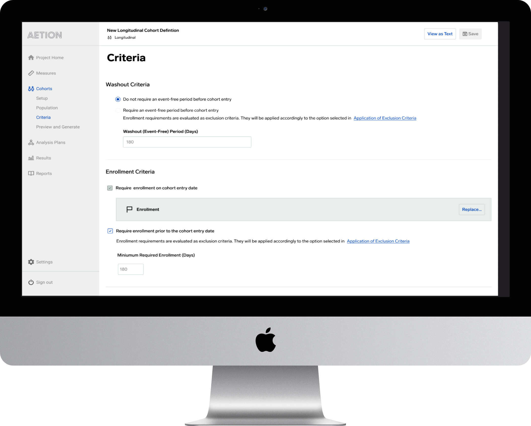 User flow within the criteria screen that displays washout criteria being more flexible with radio button configurations. Previously, the user was locked into hard coded settings based on the type of cohort definition the user was working with.